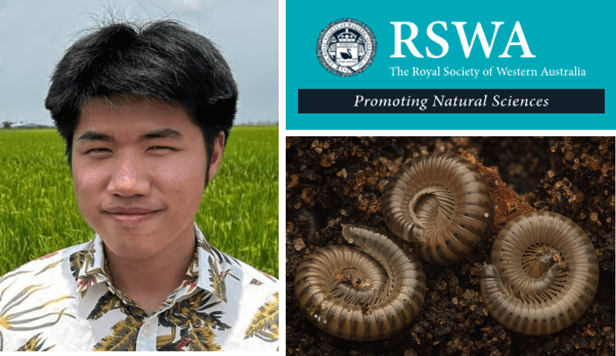 PBG HDR student Ian Lim has been awarded a Royal Society of Western Australia John Glover Research Support Grant. John Glover research support grants are awarded annually to support students studying the natural sciences in Western Australia. The grant of $15,000 will primarily be used to cover project costs. Ian is channeling his passion for conservation and wildlife genomics to study invasive species in Western Australia. His research explores computational approaches to estimate natal dispersal and gene flow directionality at a fine-scale landscape. Using the invasive Portuguese millipede (Ommatoiulus moreleti) as a model species, Ian applies close-kin genetic methods and landscape resistance to uncover how small, cryptic invertebrates move between habitats to inform strategies in managing invasive spread and protect native biodiversity in Perth bushlands. Congratulations Ian!